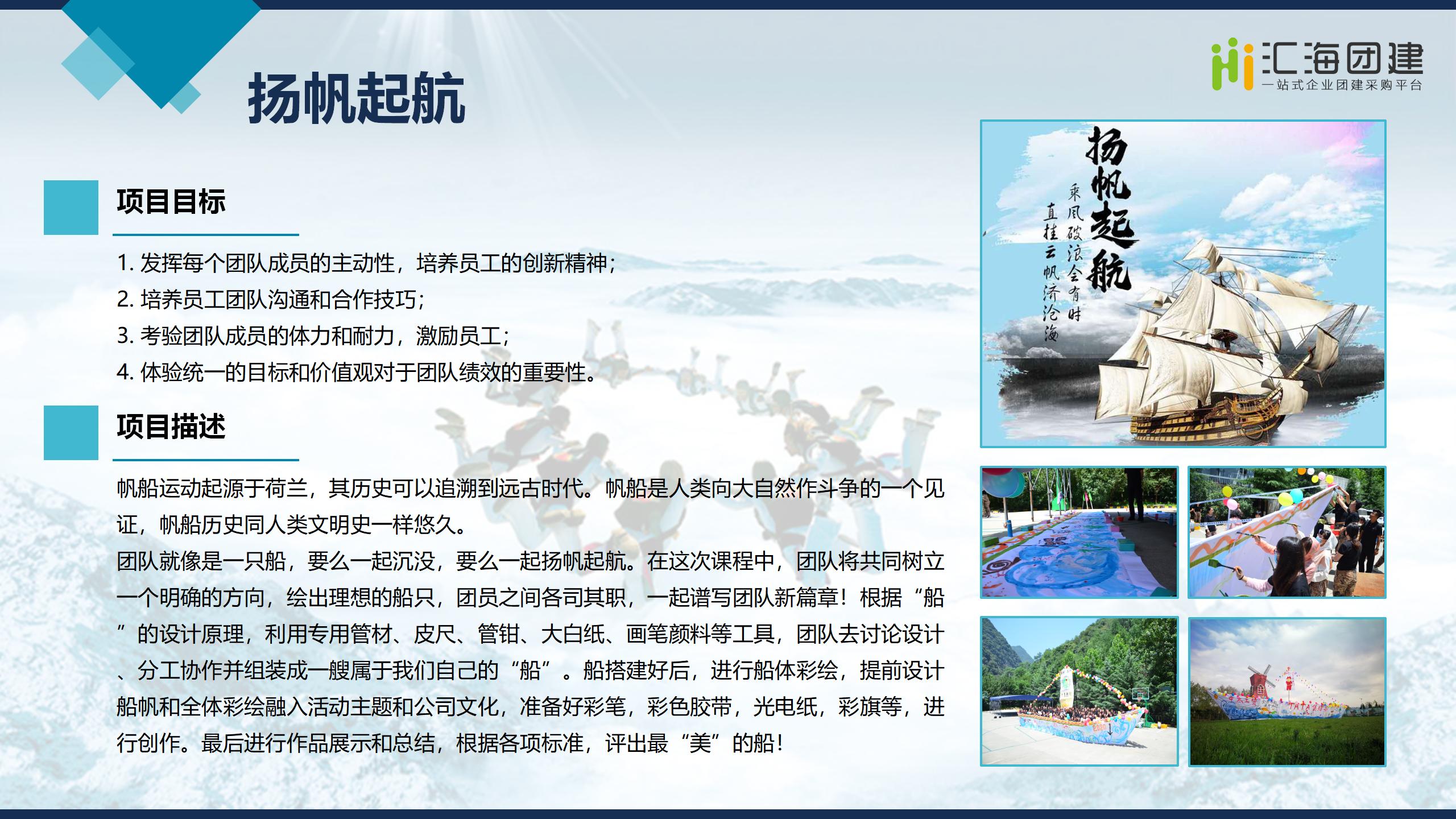 通过团队的共同努力完成一幅具有企业文化代表意义的图画,用视觉的感观直接呈现在面前,提升企业员工的企业归宿感,团队凝聚力的高度体现,分工协作,时间管理,目标管理。
